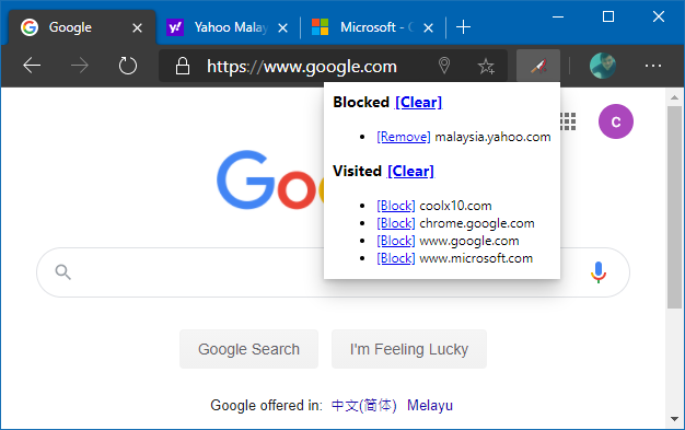 It's almost same like the blocked list. The difference is that during addition, it will extract the hostname from the URL and only supports HTTP or HTTPS protocol. It only keeps the latest 100 items.