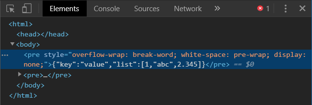 - You can see that it's a single pre element in the body .