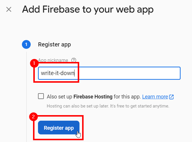 Goto https://firebase.google.com/ and register for an account, then go to the Firebase console and add a project. Go through the wizard pages to add your project.