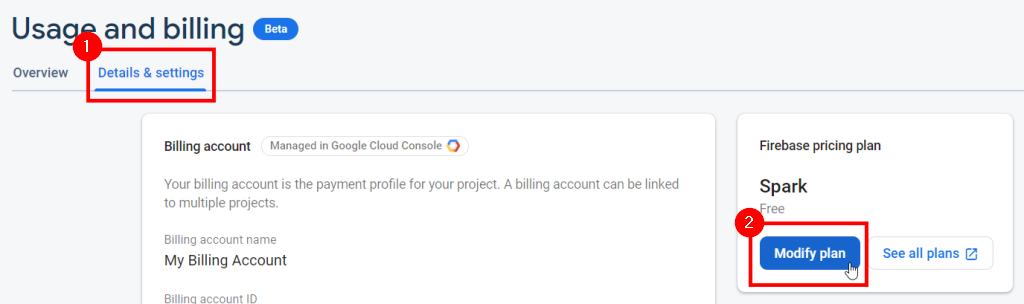 After that, goto Usage and billing to make sure you are using a free plan so you don't pay for anything.