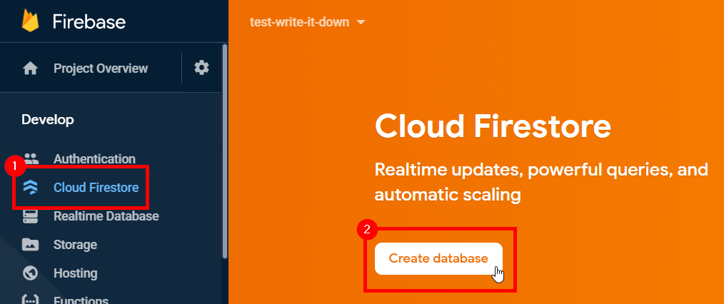 Open the Firebase console. Goto Cloud Firestore and create a new database.