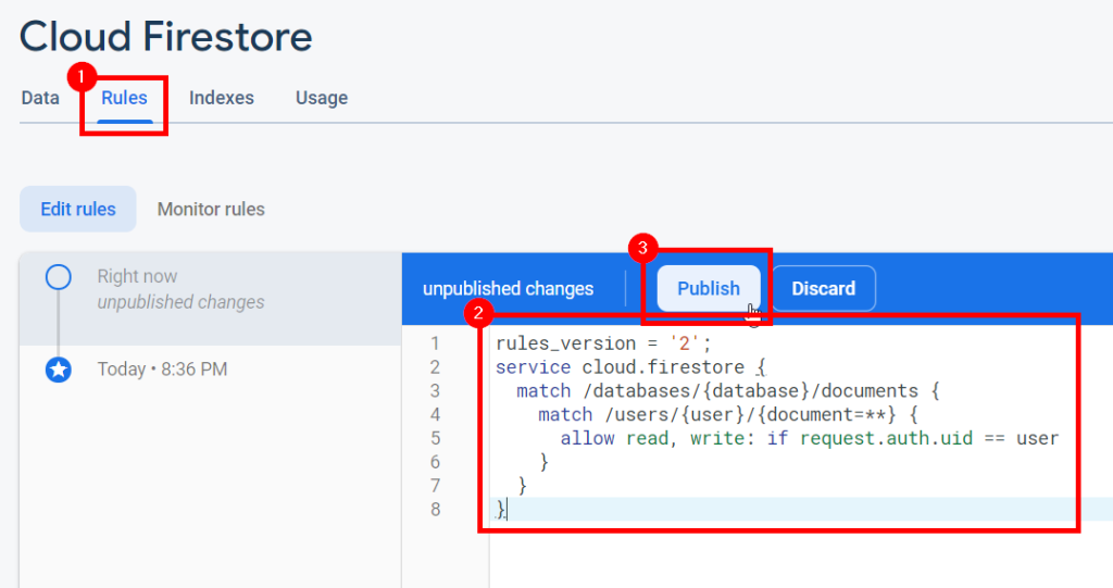 A single database is shared by all the users but we want the user only able to access his/her own data. Thus, we need to setup the rules for this.